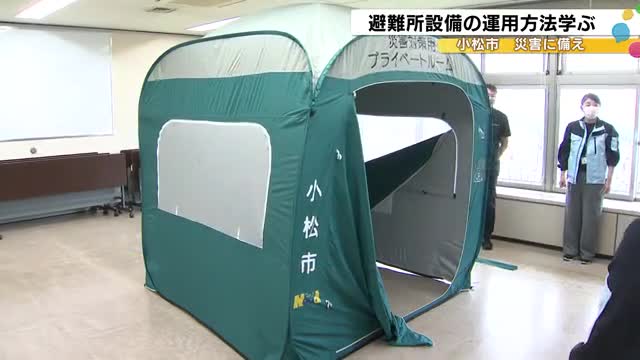 石川県小松市の職員が、避難所で欠かせない設備の組み立て方や運用方法を学びました。