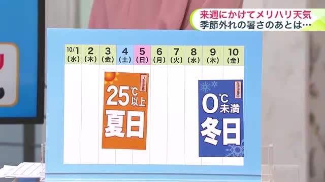 札幌も23℃で、10月に入りますが、9月中旬並みの高温でしょう。