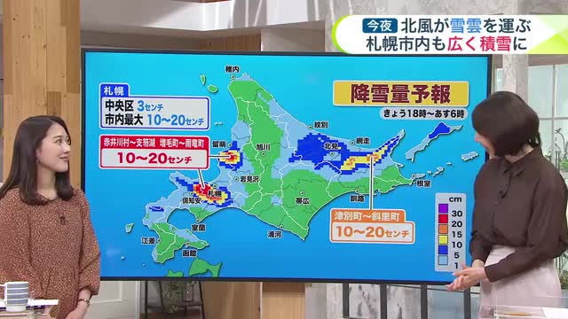 札幌市内は中央区3センチ、南区・西区・手稲区の山沿いは最大20センチです。