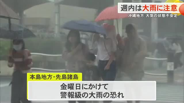 沖縄地方は湿った空気の影響により大気の状態が非常に不安定で、24日ごろにかけて警報級の大雨となるおそれがあります。