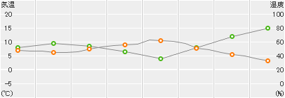 朝までの最低気温 4.8℃ | 最高気温 10.9℃ | ||||||