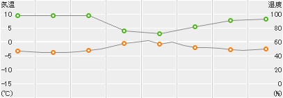 朝までの最低気温 -3.8℃ | 最高気温 1.0℃ | ||||||