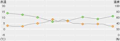 朝までの最低気温 2.2℃ | 最高気温 10.0℃ | ||||||