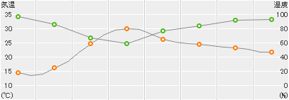 | 湿度(%) | 97 | 86 | 67 | 59 | 77 | 84 | 92 | 93 |