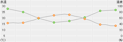 | 湿度(%) | 91 | 80 | 59 | 45 | 50 | 62 | 84 | 87 |