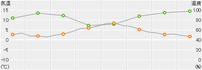朝までの最低気温 1.3℃ | 最高気温 8.9℃ | ||||||