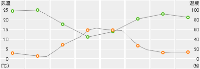 朝までの最低気温 1.1℃ | 最高気温 16.5℃ | ||||||