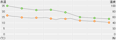 朝までの最低気温 14.0℃ | 最高気温 17.1℃ | ||||||