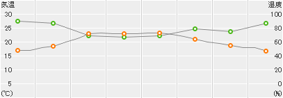 | 湿度(%) | 90 | 87 | 69 | 67 | 69 | 79 | 75 | 87 |