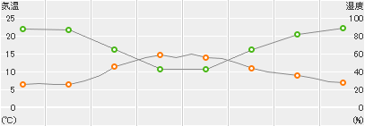 | 湿度(%) | 88 | 87 | 65 | 43 | 43 | 65 | 82 | 89 |